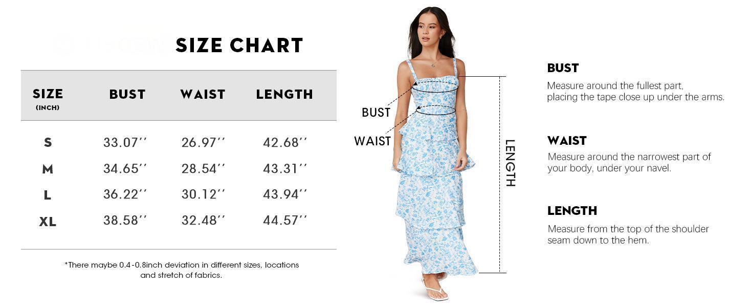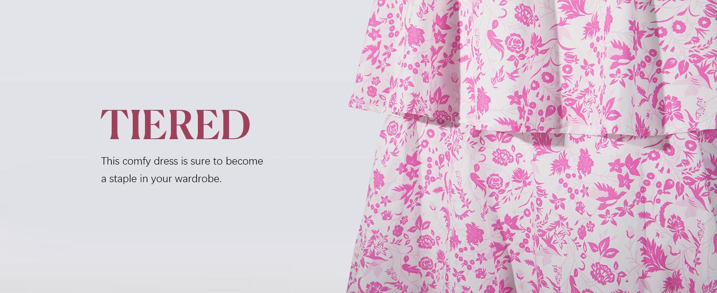 - The flowy tiered design of the floral dress is carefully crafted to flatter all body types. The tiers create a beautiful and feminine silhouette that accentuates your curves in all the right places. The dress skims over any areas you may want to hide, while still providing a comfortable and relaxed fit. Whether you have an hourglass figure or a more athletic build, this dress will make you feel confident and beautiful.