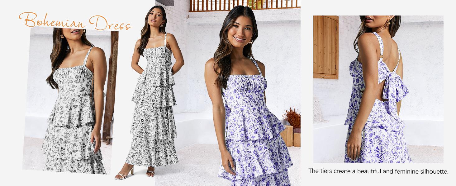 - The summer tiered dress is crafted from high-quality materials that prioritize both comfort and durability. The fabric is carefully selected to ensure a soft and lightweight feel against the skin, making it perfect for hot summer days. Additionally, the materials used are designed to-quality withstand regular wear and tear, allowing you to enjoy this dress for seasons to come. This comfy dress is sure to become a staple in your wardrobe.